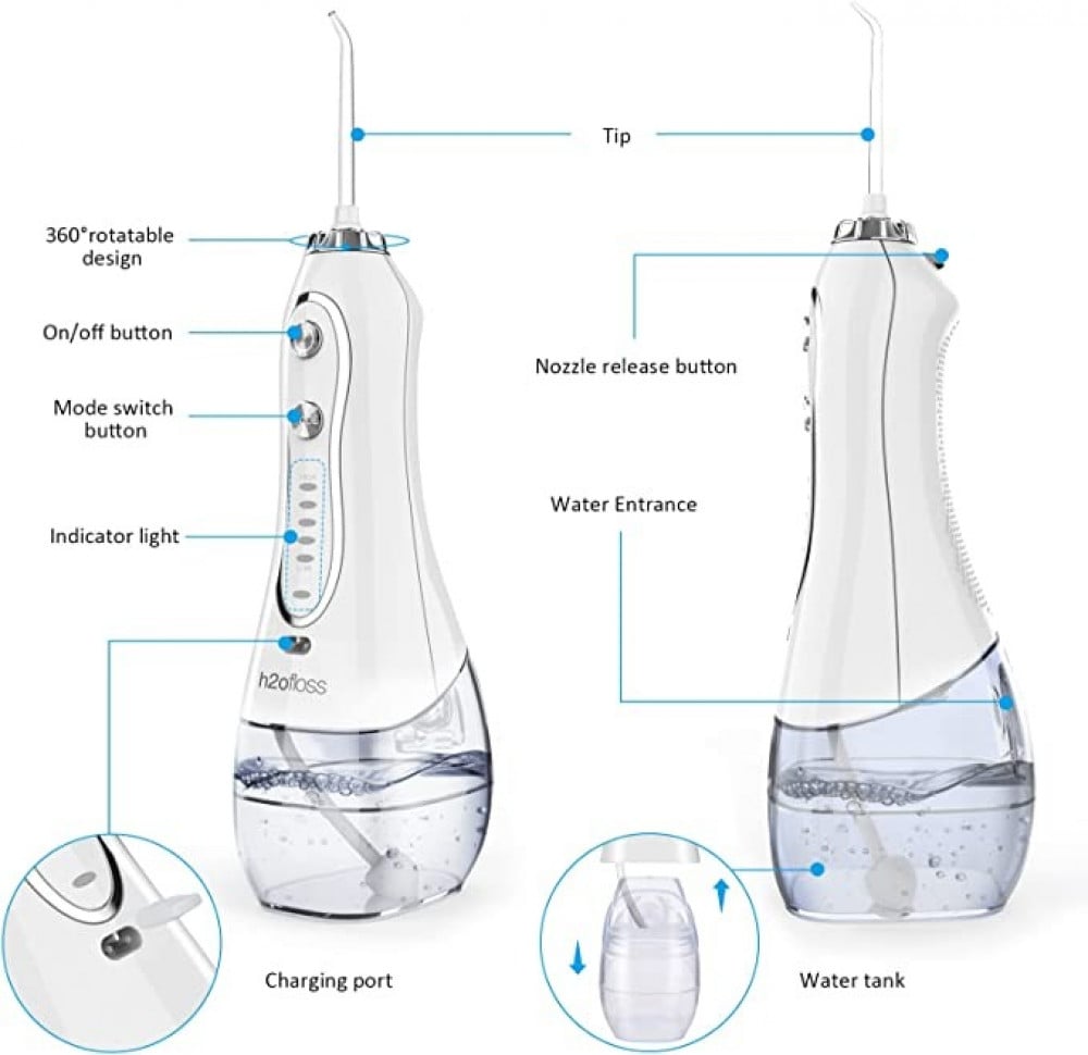 - تصميم فوهـة قابلة للدوران بزاوية 360 درجة: تتيح لك الفوهـة القابلة للتدوير 360 درجة تنظيف المناطق التي يصعب الوصول إليها بسهولة وتمنع تسوس الأسنان وتراكم الجير والحصوة السنية ونزيف اللثة وفرط حساسية الأسنان.