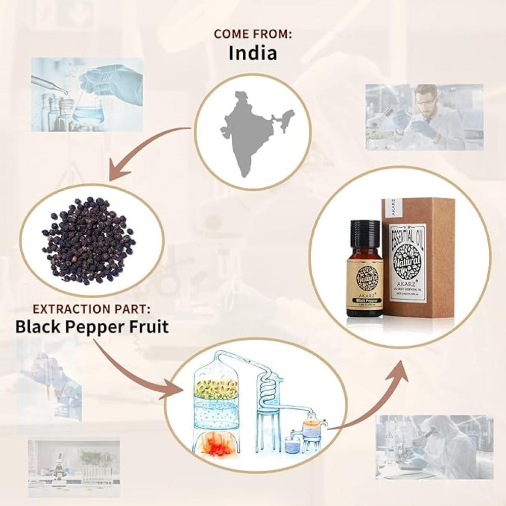 اكارز زيت الفلفل الأسود العطري، زيت الفلفل الأسود العضوي الطبيعي للعناية بالشعر والجسم، موزع للشموع، الصابون، صناعة يدوية، رائحة التدليك 10 مل