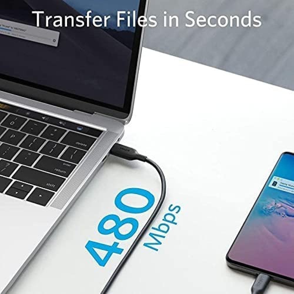 كيبل باور لاين III بمنفذ يو اس بي سي الى لايتننج من انكر، بطول 6 اقدام، لون اسود