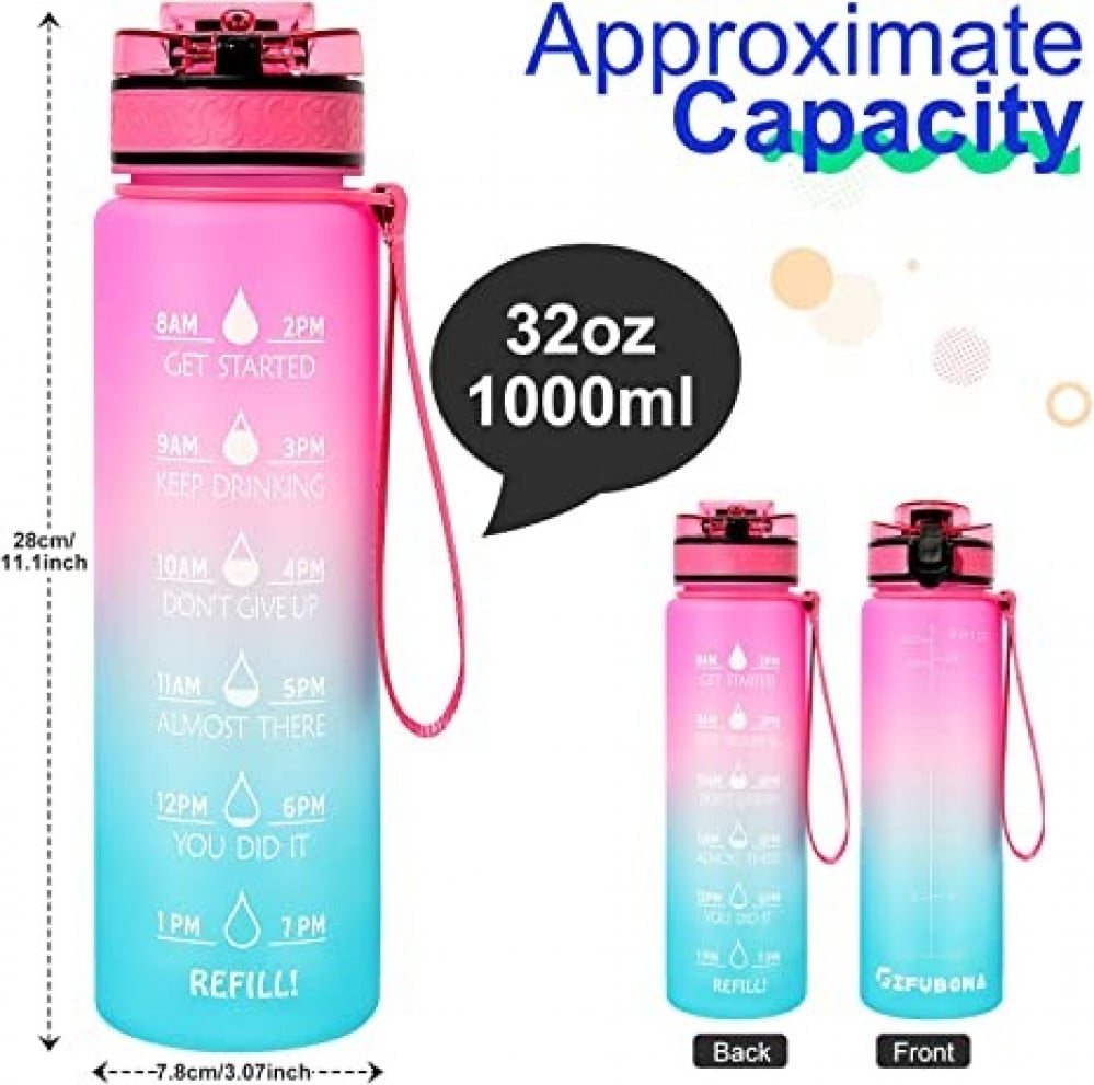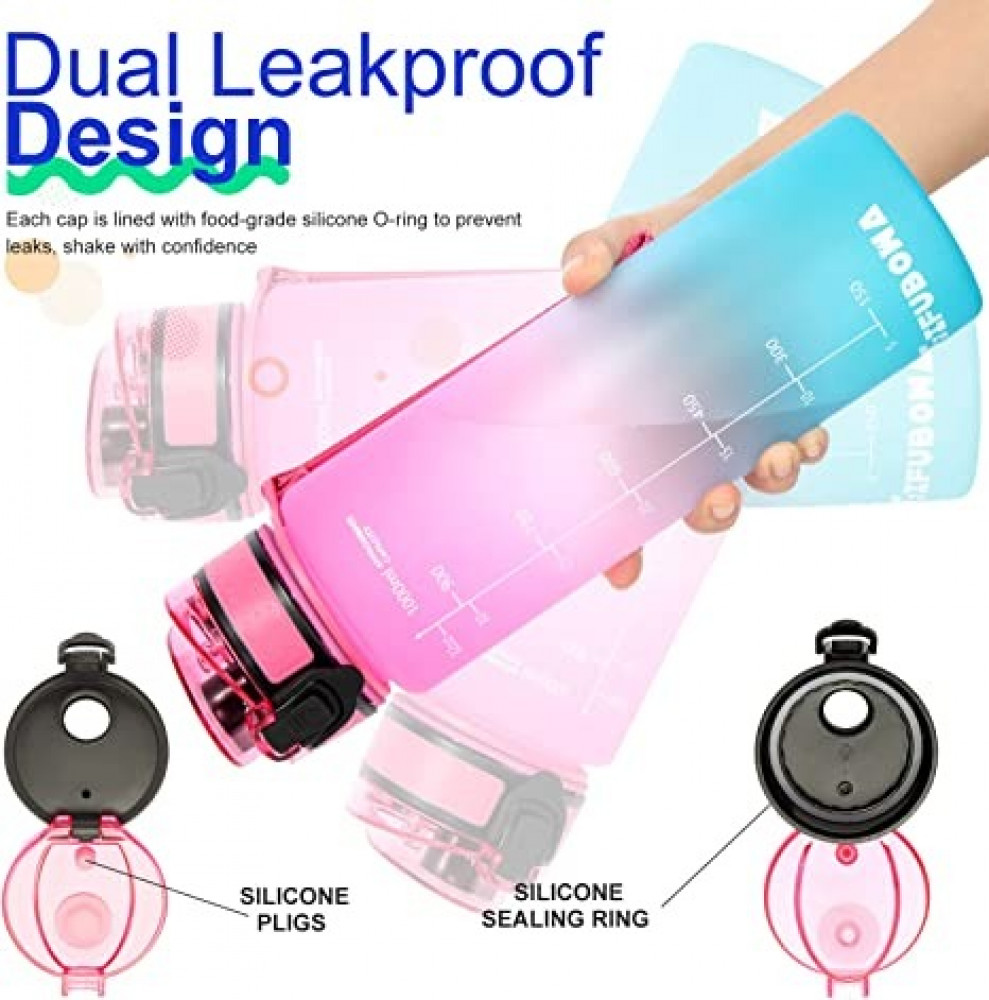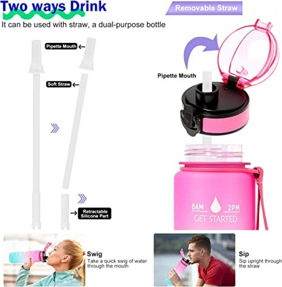 خالية من السموم ومن مادة BPA - زجاجة المياه هذه، المصنوعة من التريتان وبلاستيك الكوبوليستر عالي الجودة، خالية من السموم ومن مادة BPA بنسبة 100% وخالية من الروائح وصحية لشرب المياه. زجاجة المياه هذه بسعة 32 اونصة / 1 لتر، وهي الكمية الكافية التي تحتاجها لروتين الترطيب اليومي والمشي لمسافات طويلة وركوب الدراجات وركوب والدراجات البخارية والتخييم والجري واليوغا أو أي رياضات أخرى.
