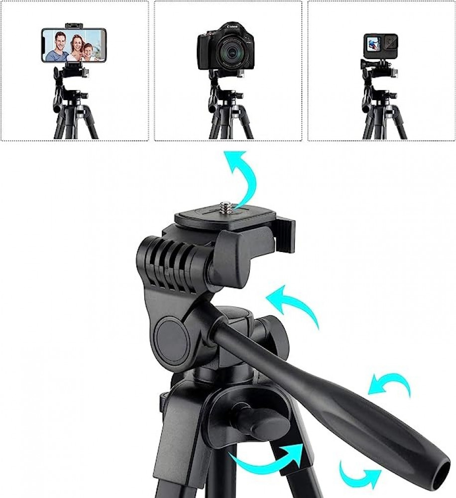 قابل للتمدد وقابل للطي: يمكن تمديد الحامل ثلاثي القوائم من 15.5 انش إلى 52 انش، ما يسمح لك بالحصول على نطاق تصوير أوسع. مناسب جدًا للتصوير الفوتوغرافي والفيس تايم والبث المباشر وتسجيل الفيديو وأكثر من ذلك.
