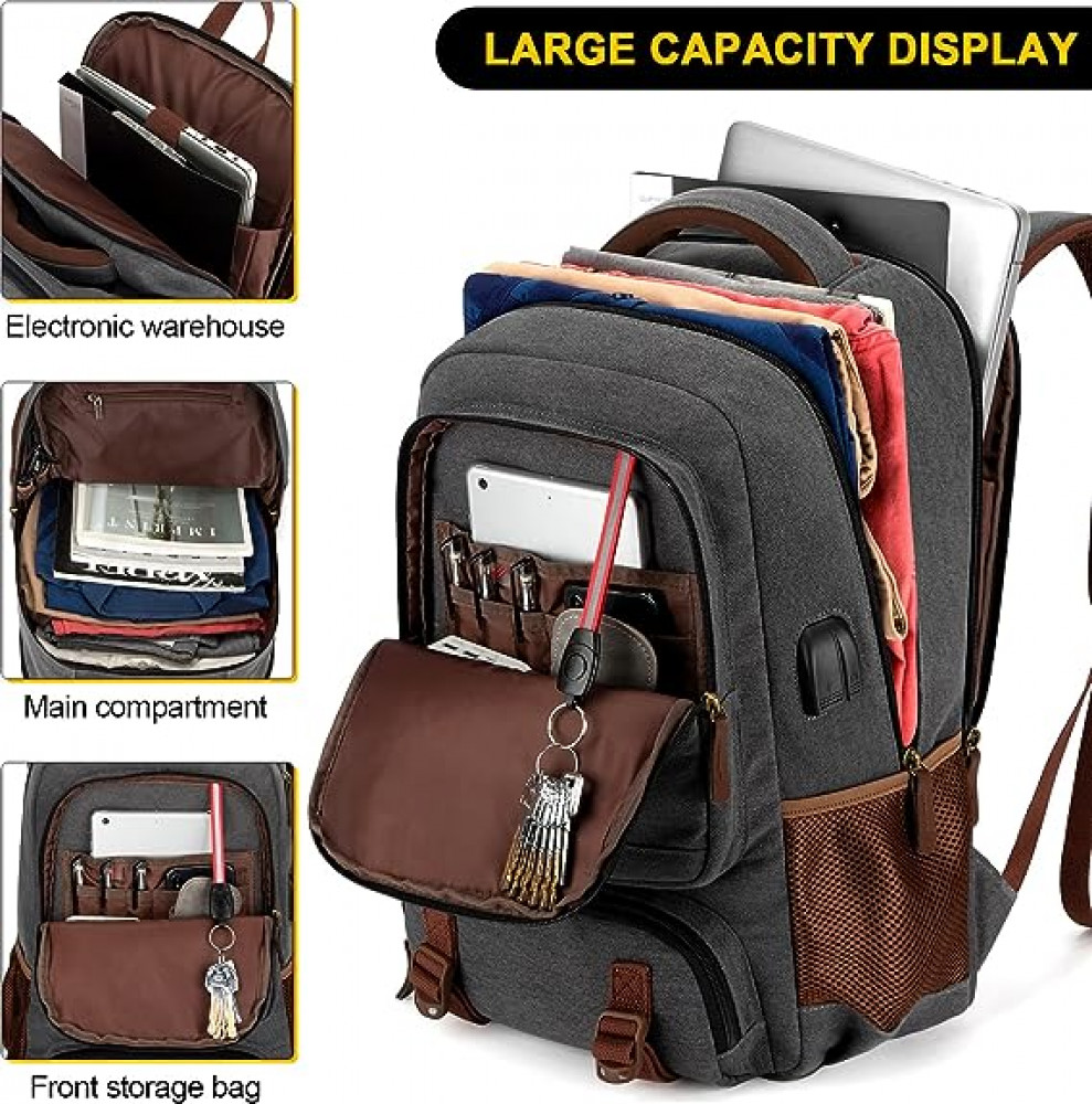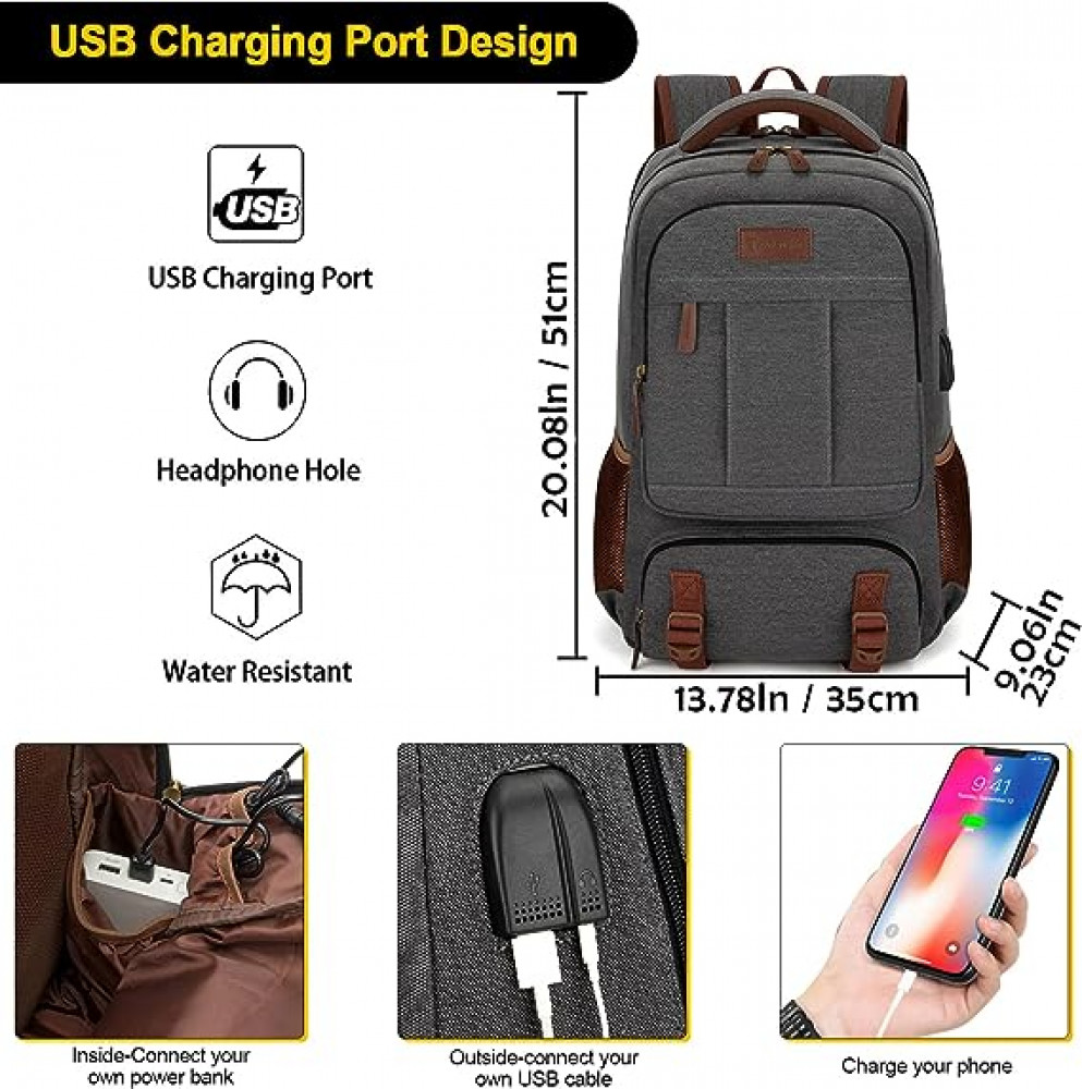 شنطة ظهر من القماش مع منفذ شحن USB مناسبة للسفر والمدرسة والكتب واللابتوب مقاس 15.6 انش للرجال والنساء من تزولا