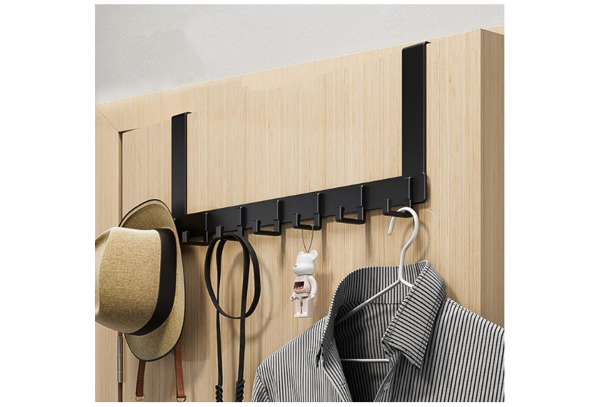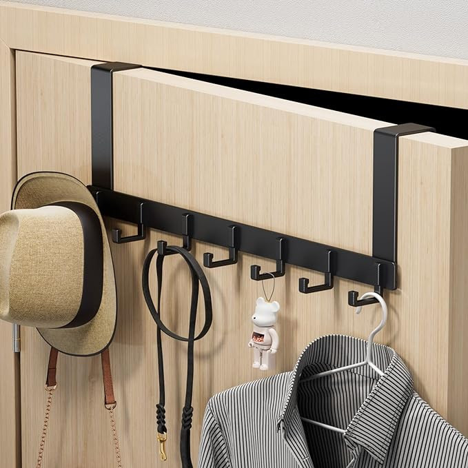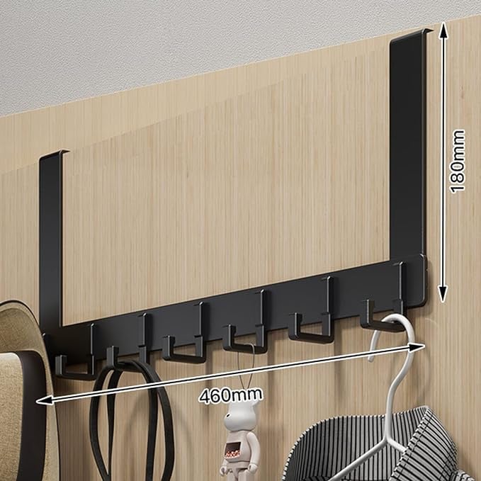 رف معاطف على الباب بـ 7 خطافات: يحتوي رف المناشف الموجود فوق الباب على 7 خطافات، مما يسمح لك بتعليق المعاطف والقبعات والأحزمة والمناشف والأوشحة والسترات المزودة بغطاء للرأس والمفاتيح وغيرها من الأشياء، مما يمنع الفوضى في منزلك بشكل فعال ويوفر لك الوقت والمساحة.