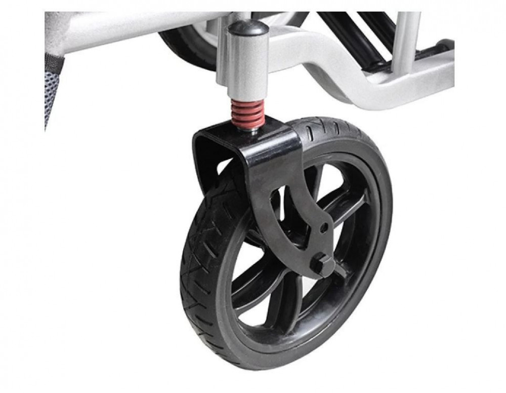 -عجلات الكرسي مزودة بماصات للصدمات توفر الراحة للمستخدم على الطريق الوعرة