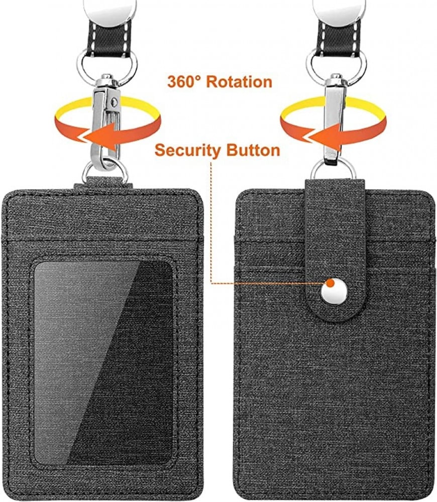 حامل شارة رأسي بوجهين: 1 نافذة تعريف شفافة (أمامية) + 1 زر أمان و2 فتحات بطاقات مؤمنة واحدة منها هي فتحة بطاقة غير قابلة للطي (خلفية). فتحة هوية بغطاء شفاف لرؤية واضحة وحماية لتسهيل مسح بطاقات الهوية. فتحات أمامية وخلفية للبطاقات لسهولة التحكم والوصول.