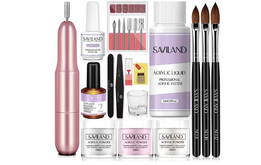 • مجموعة أظافر أكريليك للمبتدئينتأتي مجموعة الأظافر الأكريليك سافيلاند مع مسحوق أكريليك شفاف/أبيض/زهري، مجموعة ماكينة حفر أظافر كهربائية، 1 × سائل أكريليك 50 مل، 1 × طبق زجاجي للأظافر، 1 × وصلة بي اتش خالية من الأحماض، 1 × طبقة علوية لا تحتاج للمسح، فرشاة أظافر أكريليك (8/10/12) بوظائف مختلفة، 2 قطعة من أدوات الأظافر (مبرد أظافر وعازلة) و100 قطعة من أشكال الأظافر لتلبية احتياجات طلاء الأظافر، تتضمن كل ما تحتاجه للبدء في فن الأظافر الأكريليكي.
