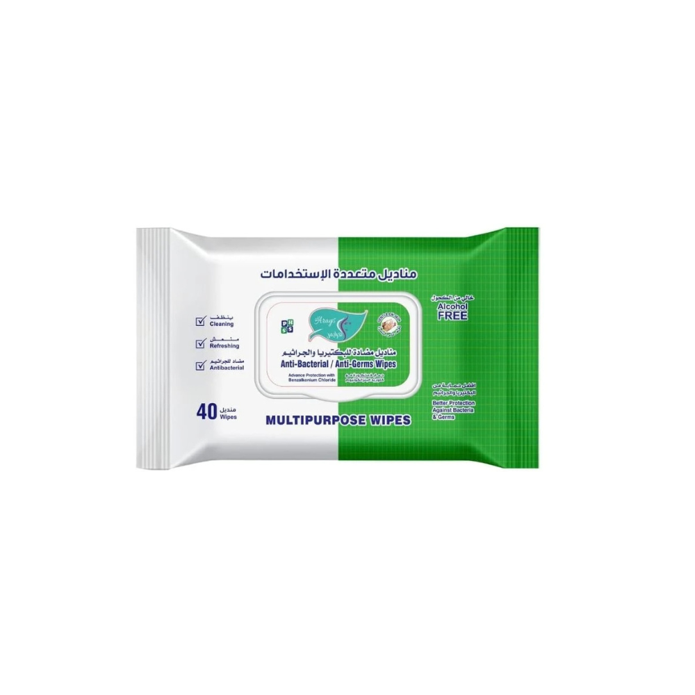 حافظ على نظافة يديك وأغراضك مع مناديل مبلله مضادة للبكتيريا والجراثيم، مثالية لكل أفراد الأسرة.