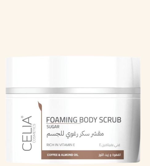 امنحي بشرتك احساساً أخاذاً وتخلصي من المسام والرؤوس السوداء ، اجعلي بشرتك حيويه وجديدة وذو ملمس ناعم مع مقشر السكر الرغوي بالقهوةروزيت اللوز .