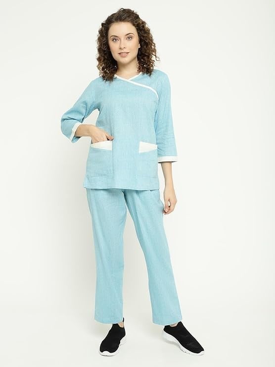 تصميم كلاسيكي: زي الممرضة من يونيفورم كرافت يتميز برقبة بسيطة مع أزرار. يتميز التصميم بتصميم جذاب يعطي مظهرًا احترافيًا دون التخلي عن الراحة والعملية. تتميز الياقة والجيوب والأكمام بخطوط متباينة تضيف إلى نمط الزي. يأتي البنطال بظهر مطاطي ورباط في الأمام. مثالي للنساء ذوات الطول 5.3 انش إلى 5.6 انش