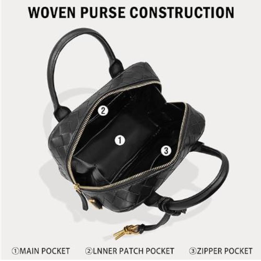 • المواد: الحقيبة المنسوجة مصنوعة من نسيج جلدي عالي الجودة، عصرية ولطيفة، مع شعور قوي بالتصميم.