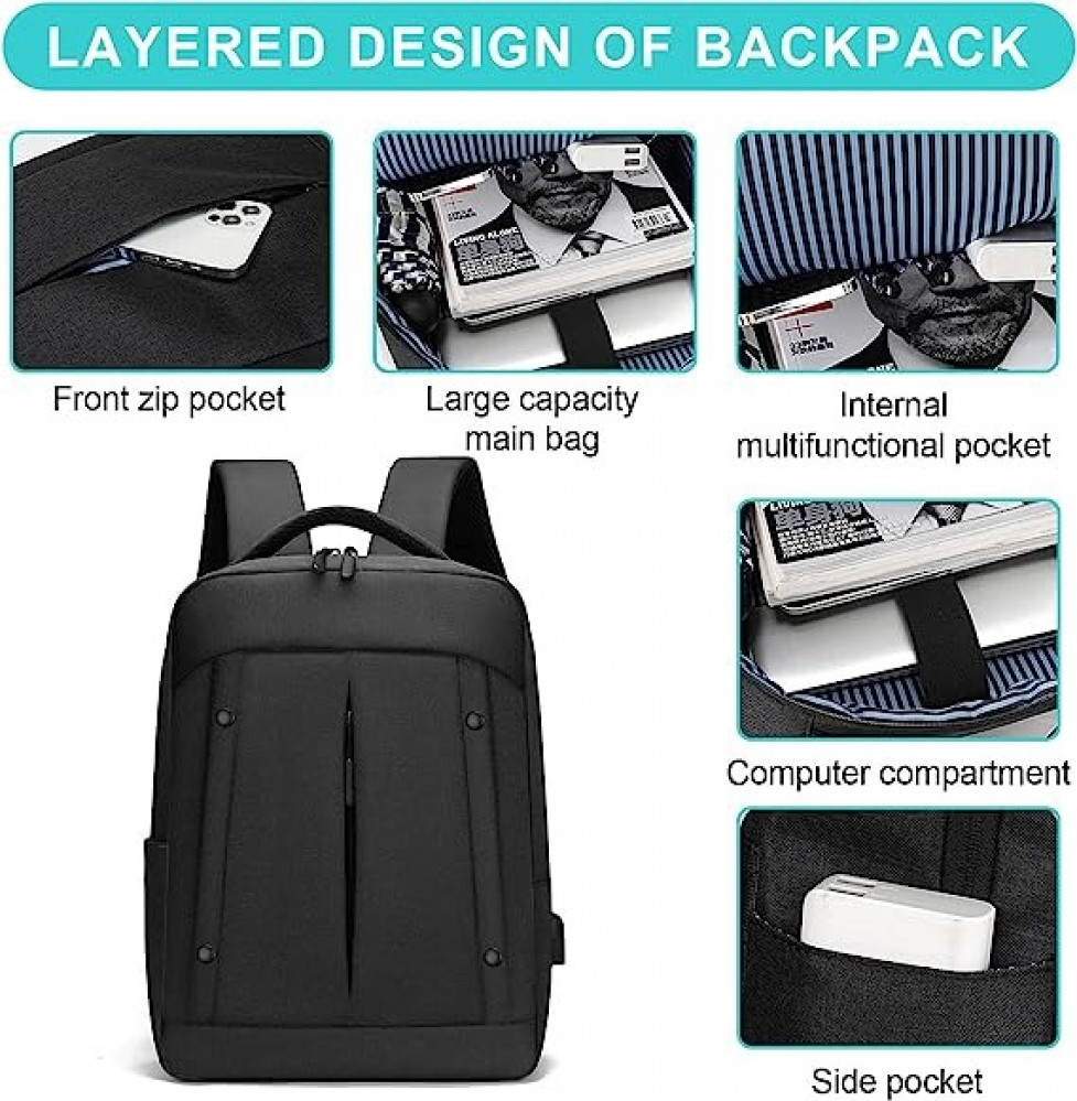 شنطة ظهر كاجوال للابتوب تناسب لابتوب مقاس 15.6 انش للرجال والنساء وطلاب المدارس والجامعة للاولاد والبنات, أسود