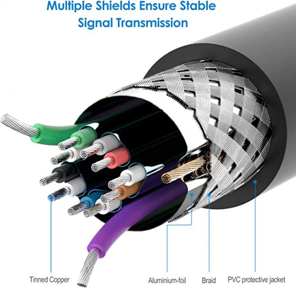موصلات مطلية بالذهب تقاوم التآكل وتوفر الصلابة وتحسن أداء الإشارة. محتويات العبوة: محول اتش دي ام اي إلى في جي ايه، كابل مايكرو يو اس بي، كابل صوت. -