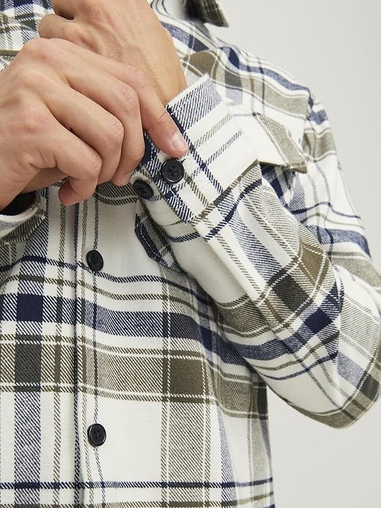 قميص جيه بروي بأكمام طويلة ونمط مربعات وقبة صغيرة للرجال من جاك اند جونز - كلاود دانسر
