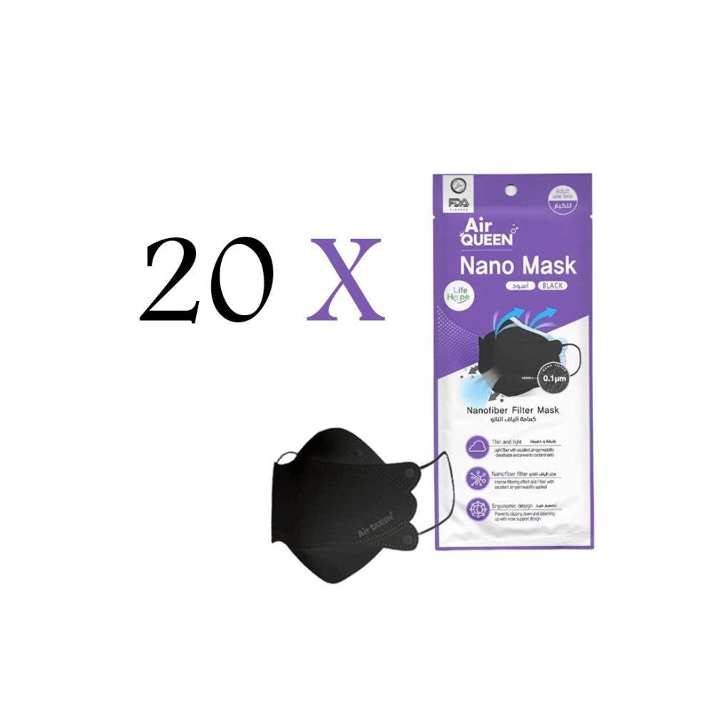 🖤 كمامة عدد 20 للوجه بتقنية النانو من ايركوين – أسود فاخر