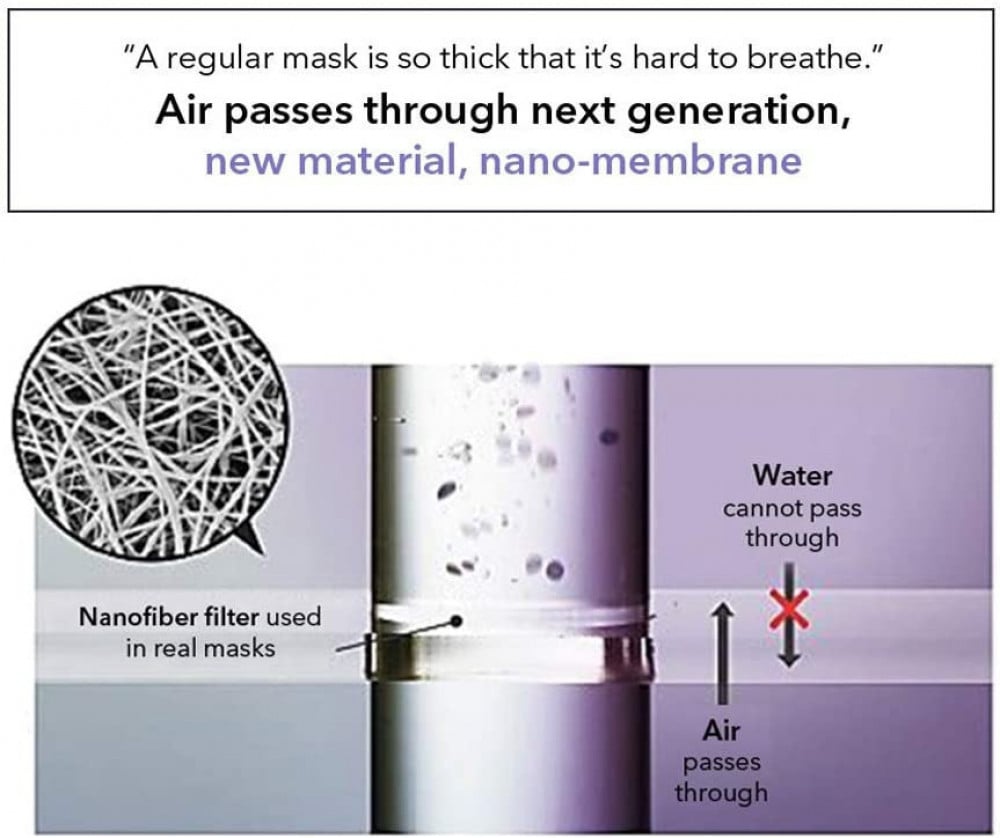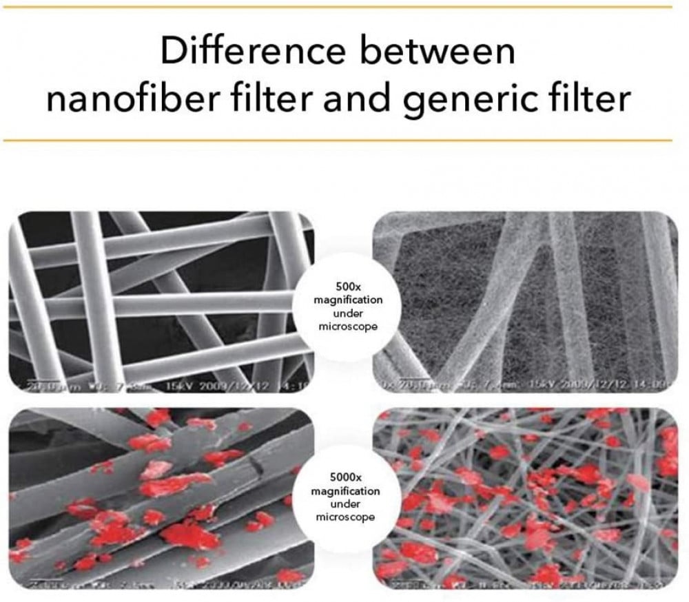 تم ترتيب مادة النانو الخاصة بنا بطريقة منظمة ضمن مصفوفة بنمط شبكة الصيد ضمن جزء من المليار من سماكة المتر من أجل الترشيح الأمثل، والمتانة والتهوية بشكل جيد... لتوفير السلامة والراحة.