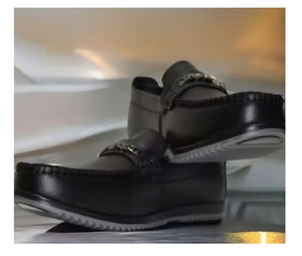 حذاء MLR جلد طبيعي أصلي لون أسود خياطة يدوية أسود وحلية حديد ونعل أصلي MLR-SH60 MLR