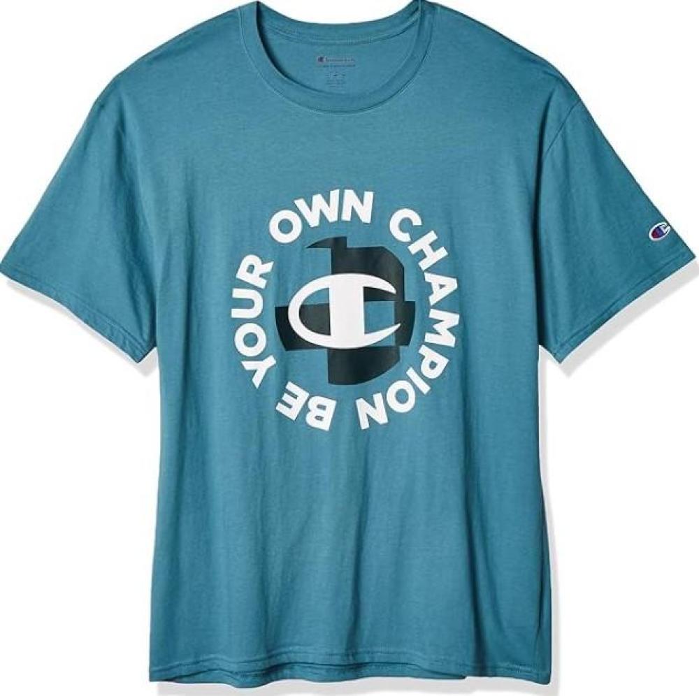 تيشيرت كلاسيكي بتصميم طبعة شعار نصي للعلامة التجارية بنمط شريط للرجال من شامبيون مقاس S