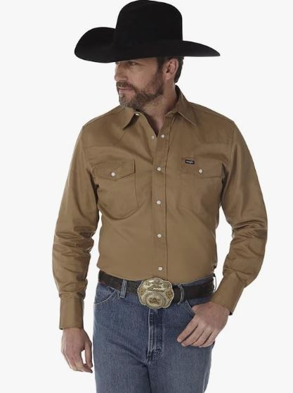 رانجلر قميص عمل غربي بأكمام طويلة وقصة رعاة البقر للرجال بلمسة نهائية ثابتة مقاس S