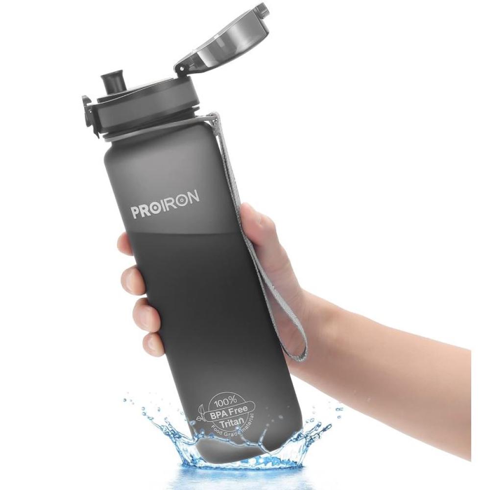 زجاجة مياه من برويرون 0.5 لتر/1 لتر مانعة للتسرب خالية من BPA من مادة التريتان الامريكية مع خليط البروتين وغطاء علوي قلاب ومصفاة قابلة للازالة للصالة الرياضية وركوب الدراجات والتخييم واللياقة البدنية اللون : رمادي داكن - 1000 مل