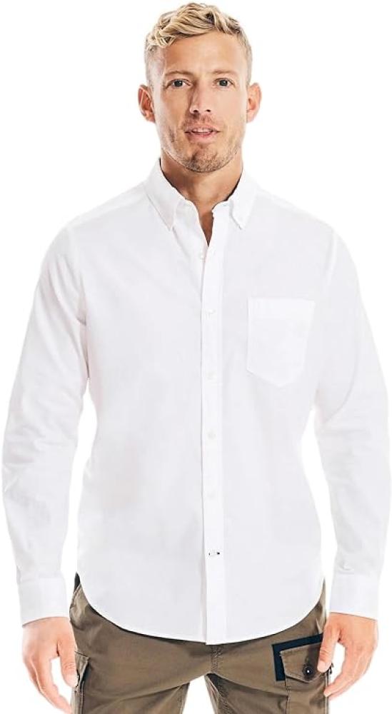 قميص رجالي كلاسيكي من قماش قابل للتمدد بأكمام طويلة وأزرار لتثبيت الياقة، ويكون القميص بأكمله موحد اللون من نوتيكا