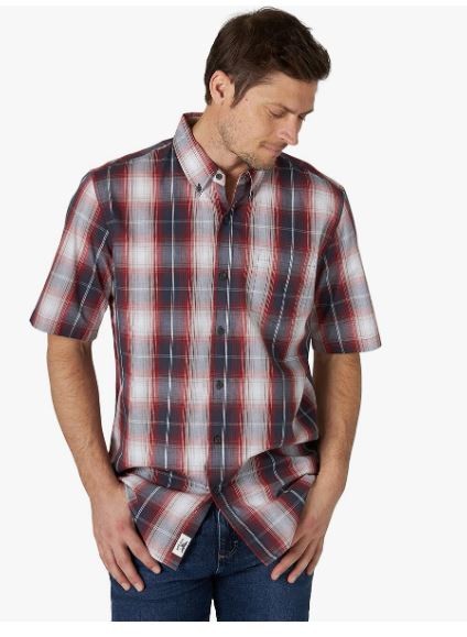 قميص كاروهات اصلي منسوج باكمام قصيرة للرجال من رانجلر مقاس S