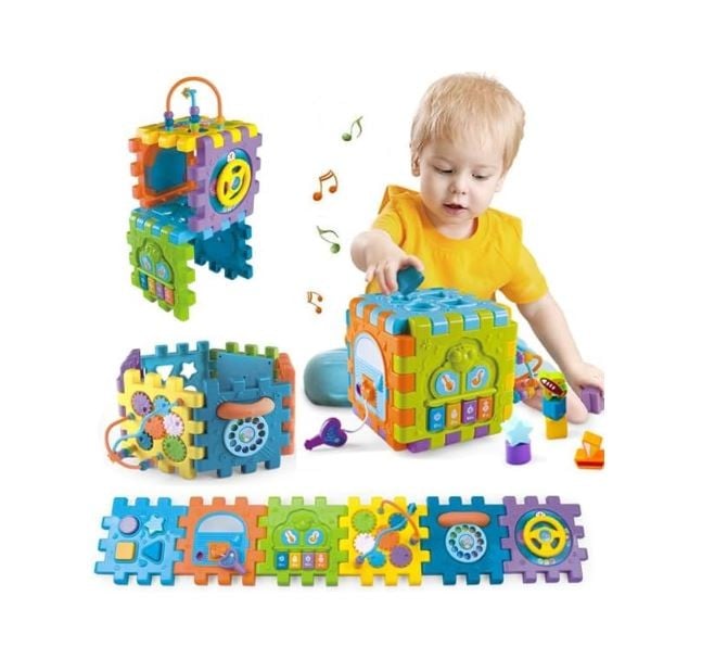 • لعبة متعددة الوظائف للأطفال 6 في 1— ألعاب مكعبات أنشطة للأطفال الصغار. 6 وظائف مختلفة، فرز الأشكال، بيانو متعدد الأوضاع، عجلة القيادة، لعبة فتح الباب، قرص الهاتف، التروس والخرز والمكعبات. تعمل على توسيع التفكير والإبداع بشكل فعال. استمر في جذب الاهتمام واستمتع بساعات من المرح.