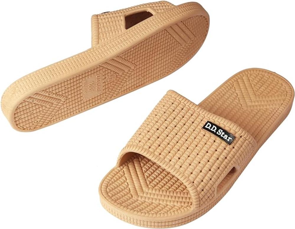 شبشب حمام كبير الحجم للرجال والنساء مقاوم للانزلاق وسريع الجفاف، حذاء استحمام مريح وناعم ومضاد للانزلاق من دي دي ستار -1001 BEIGE