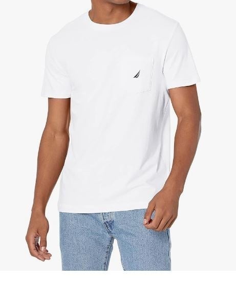 تي شيرت برقبة دائرية بدون طوق وأكمام قصيرة وجيب للرجال من نوتيكا مقاس M