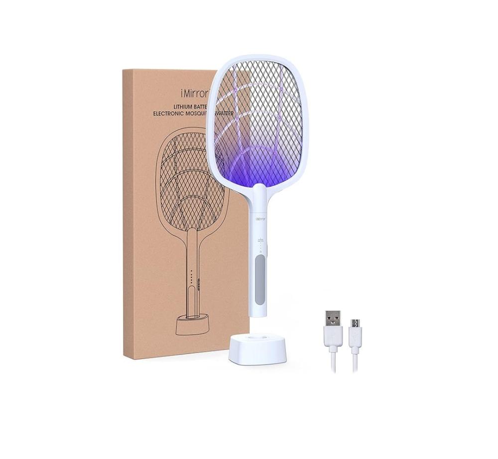صاعق الحشرات من imirror ، 2 في 1 منشة الذباب الكهربائية القابلة لإعادة الشحن ، منشة البعوض للأماكن الداخلية والخارجية 1 Pack, 1200mAH