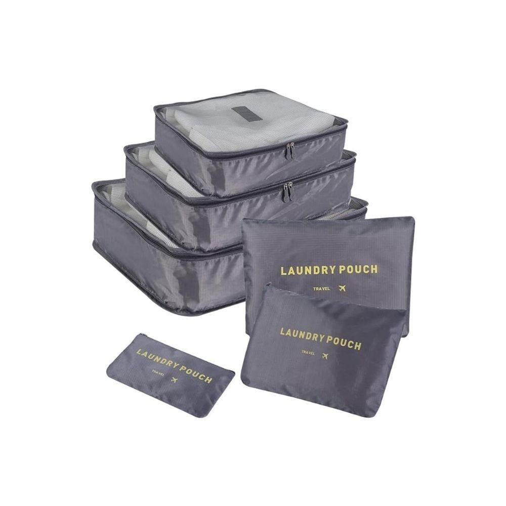 مجموعة منظم شنط السفر من 6 قطع من سكاي تاتش، مجموعة مكعبات تخزين، شنطة غسيل مقاومة للماء، اكسسوارات السفر - لون رمادي، البوليستر