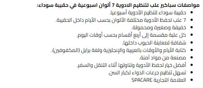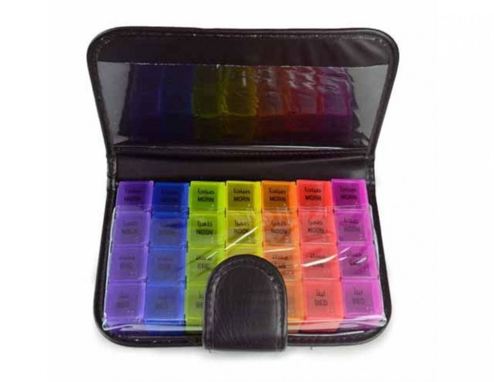 سباكير علب لتنظيم الادويه 7 الوان اسبوعية فى حقيبة سوداء 026