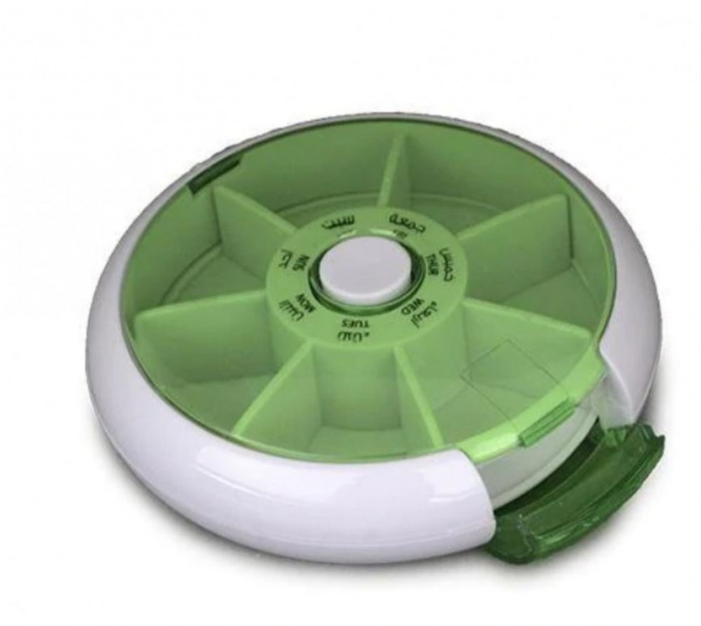 علبة شفافة دائرية لتنظيم الادوية اسبوعيا.