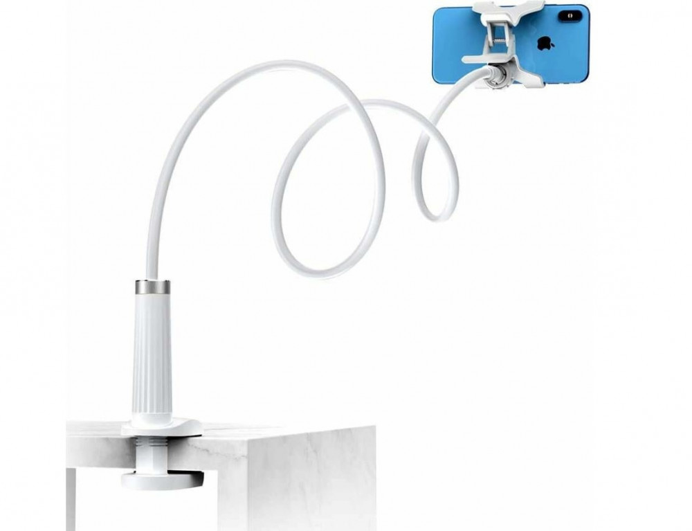 حامل هاتف على الذراع بقاعدة بلاستيكية ورقبة مرنة يسمح بتثبيت الهاتف بزوايا مريحة أثناء النوم أو القراءة أو مشاهدة الفيديو. المشبك الثابت والذراع الطويل القابل للتعديل يضمنان ثبات الجهاز وسهولة التوجيه. مناسب للمستخدمين في المنزل على السرير أو الأريكة ومن يريدون تقليل إجهاد الرقبة. خامة بلاستيكية خفيفة ووزنه مناسب للحمل، اللون أبيض يناسب الديكور. مشبك يدعم معظم الهواتف الذكية. مثالي للبث المباشر ومكالمات الفيديو أثناء الطهي أو العمل.