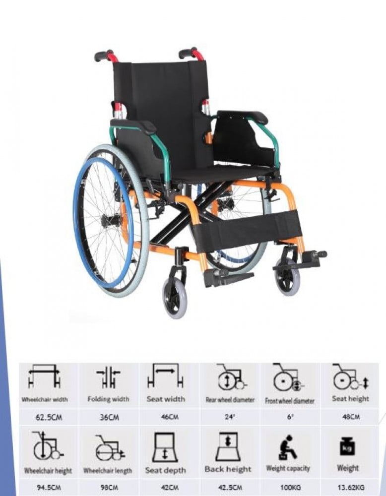 - مسند لليد قابل للارتفاع أو للطي للخلف(وهي ميزة تتيح نقل المريض من السيارة أو السرير عن طريق سحبه من الكرسي دون الحاجة لحمله بعد إزالة أو طي ساند اليد)