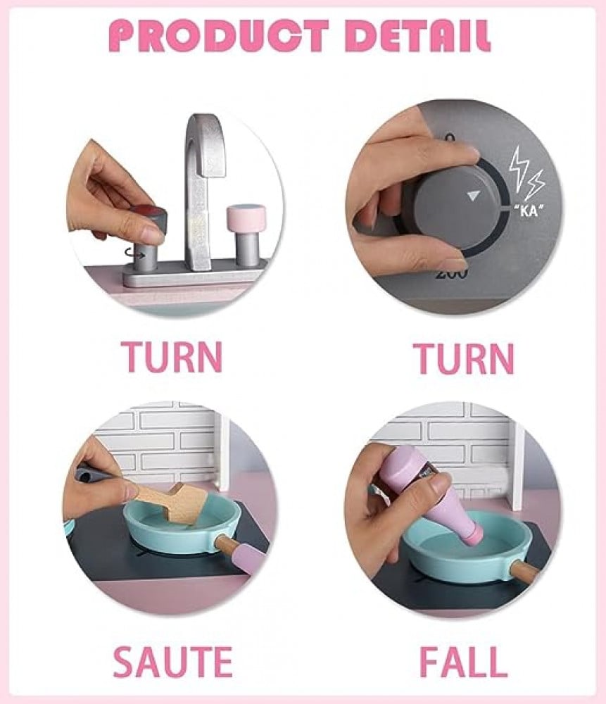 مجموعة العاب مطبخ خشب مع فرن وموقد وغسالة ملابس