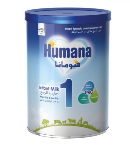 - تركيبة حليب هيومانا 1 للرضع من عمر الولادة حتى ٦ أشهر. حليب هيومانامصنوع في ألمانياوخالي من المواد المعدلة وراثياً و يحتوي علىبرو بالنس™.