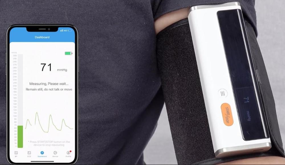جهاز قياس ضغط الدم من الذراع العلوي مزود بتقنية البلوتوث وتخطيط كهربية القلب وجهاز مراقبة صحة القلب اللاسلكي وتطبيق قياس ضغط الدم ومعدل ضربات القلب