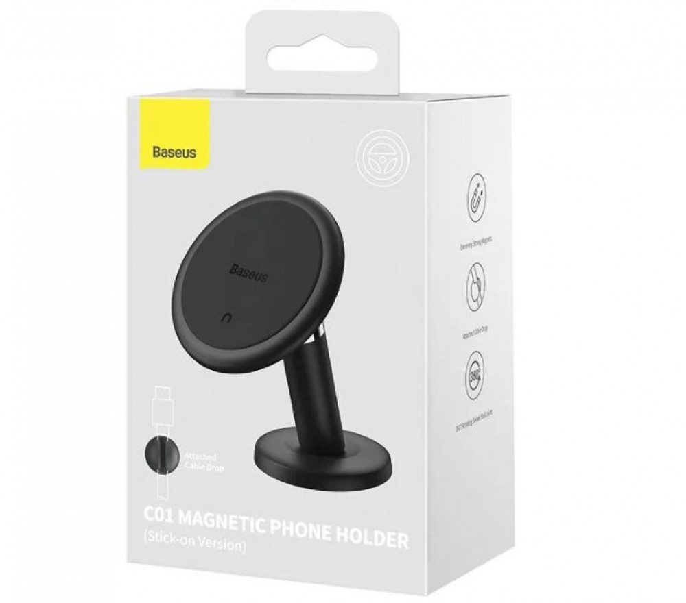 الشركة المصنعة Baseusموديل SUCC000001مادة ABS + سيليكوننوع القابض مغناطيسيالتركيب على لوحة القيادةالتوافق عالميلون أسودالأبعاد ⌀53 × 76 ملم
