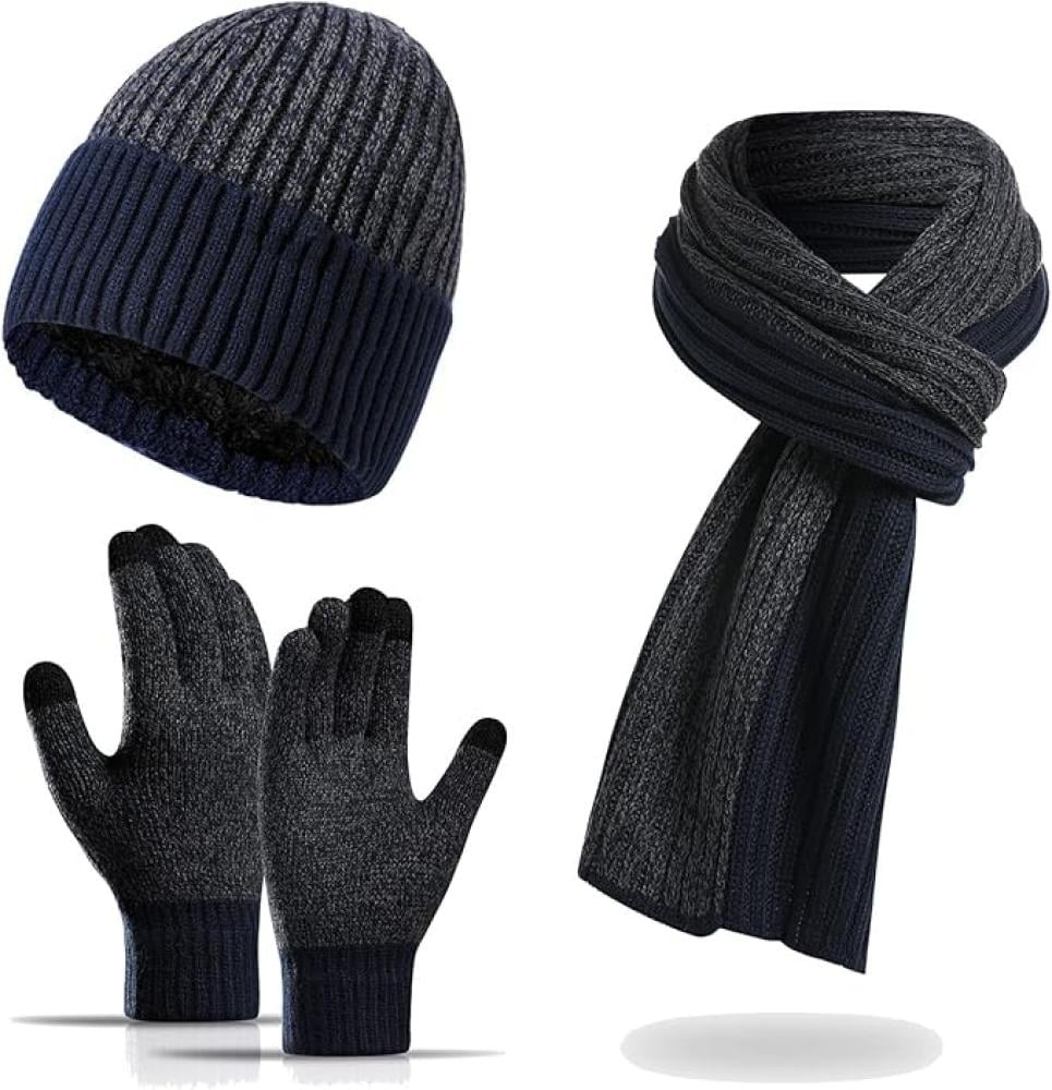 مجموعة قبعة محبوكة شتوية للرجال والنساء مع شال طويل وقفازات تعمل مع شاشات اللمس ببطانة من الفرو، طقم من الأكريليك المحبوك وبطانة من الفرو الصناعي السميك، يوفر لك الحماية الشاملة من البرد والرياح أو الثلج، مثالي لفصل الشتاء والأنشطة الخارجية. الخامة: أكريليك محبوك وصوف صناعي؛ محتويات العبوة: 1 قبعة و1 وشاح و1 زوج من القفازات المحبوكة التي تناسب الاستخدام مع الشاشات التي تعمل باللمس.
