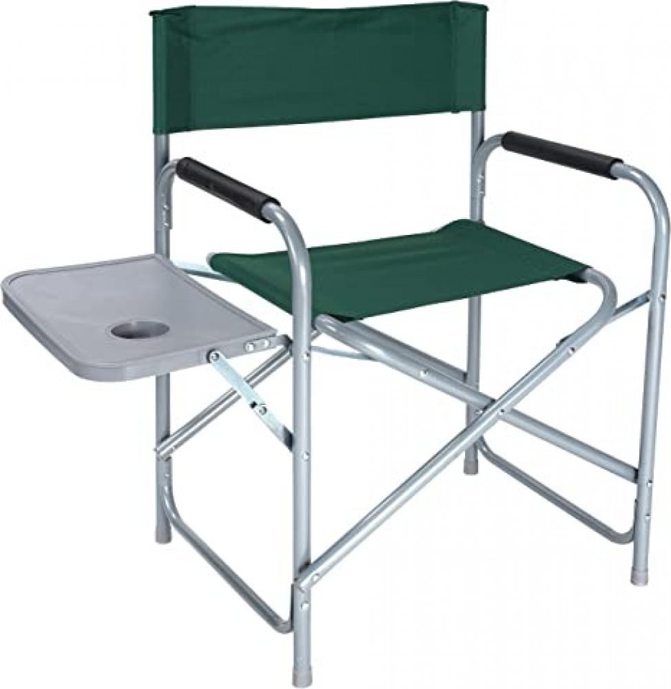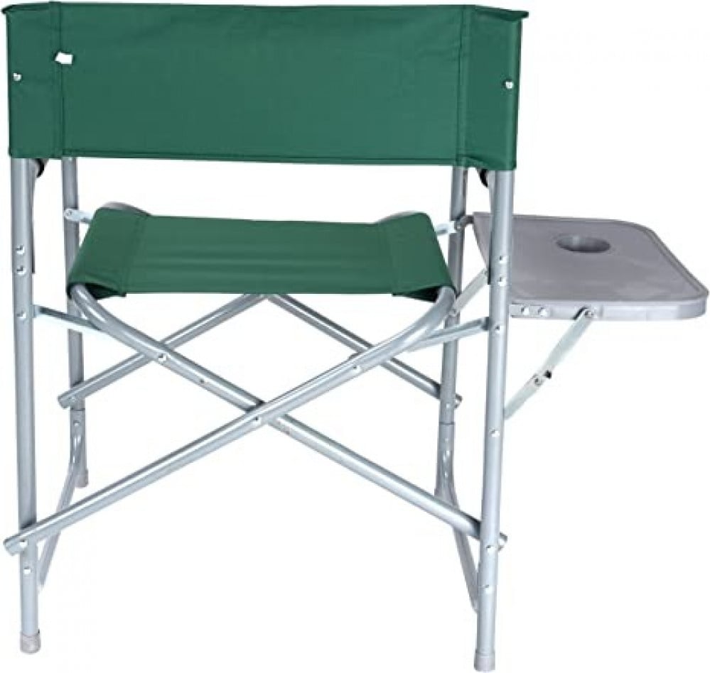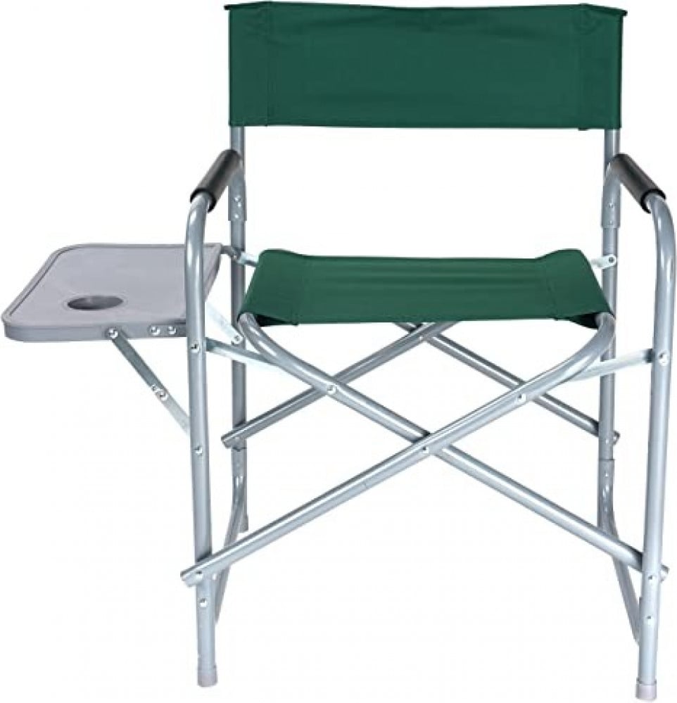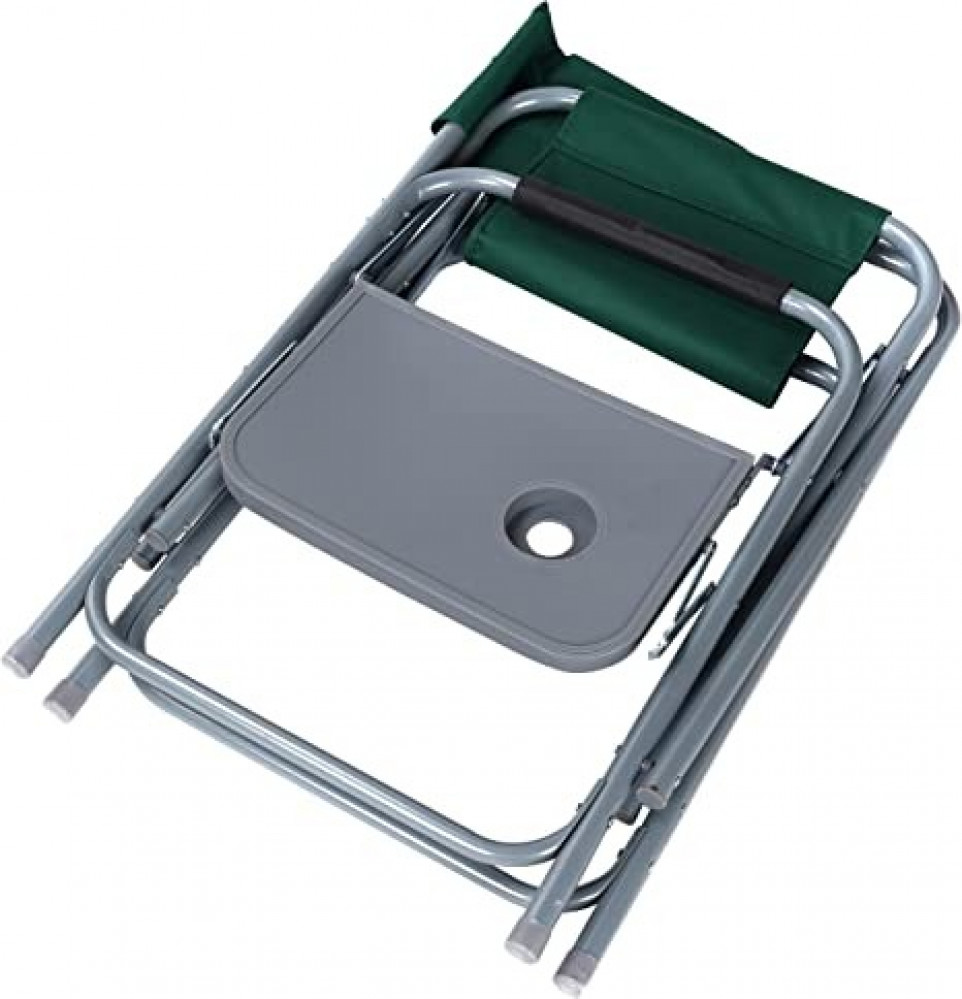 كرسي قابل للطي للتخييم والرحلات مع طاولة جانبية، اخضر/ رمادي