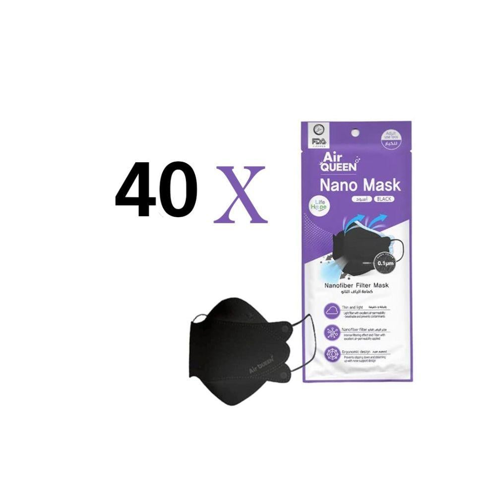 كمامة عدد 40 للوجه بتقنية النانو من ايركوين – أسود أنيق وحماية فائقة