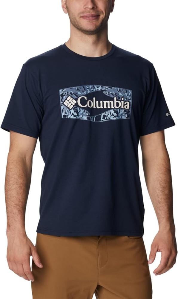 كولومبيا تي شيرت صن تريك باكمام قصيرة مزين برسومات للرجال للمشي لمسافات طويلة - جرافيك سداسي باللون الكحلي/النخيل