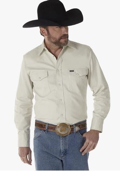 رانجلر قميص عمل غربي بأكمام طويلة وقصة رعاة البقر للرجال بلمسة نهائية ثابتة مقاس L