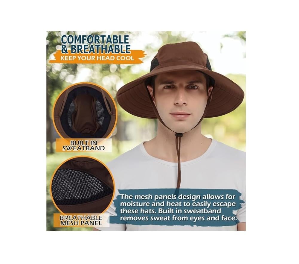 قبعة باكيت ذات وجهين رجالي وحريمي من اينسكي، قبعة قطنية مموهة للشمس للشاطئ والسفر والغولف والسفاري - 01 Brown (Classic)