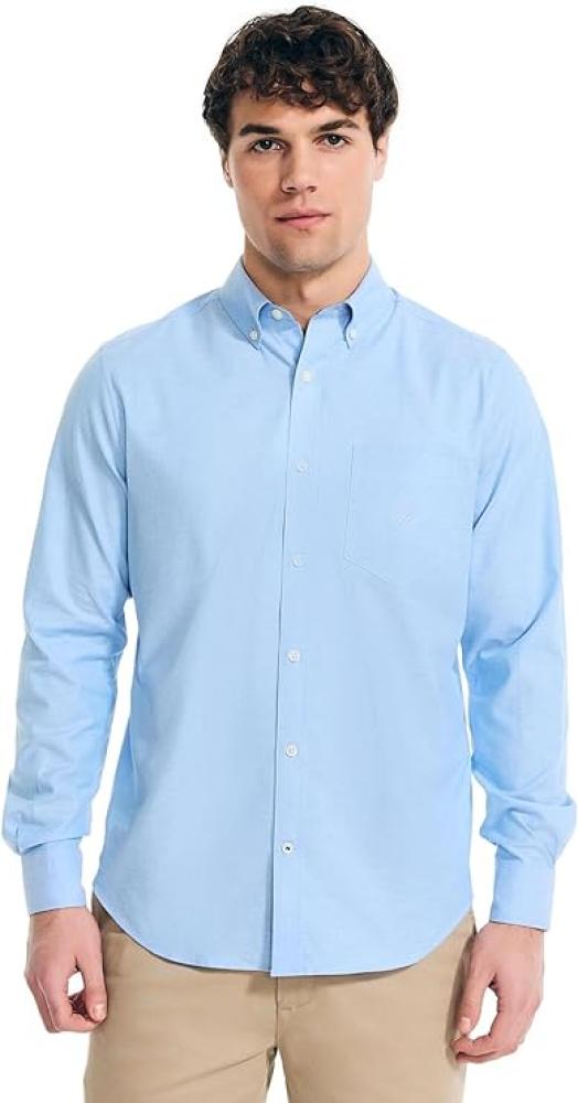 قميص رجالي كلاسيكي من قماش قابل للتمدد بأكمام طويلة وأزرار لتثبيت الياقة، ويكون القميص بأكمله موحد اللون من نوتيكا