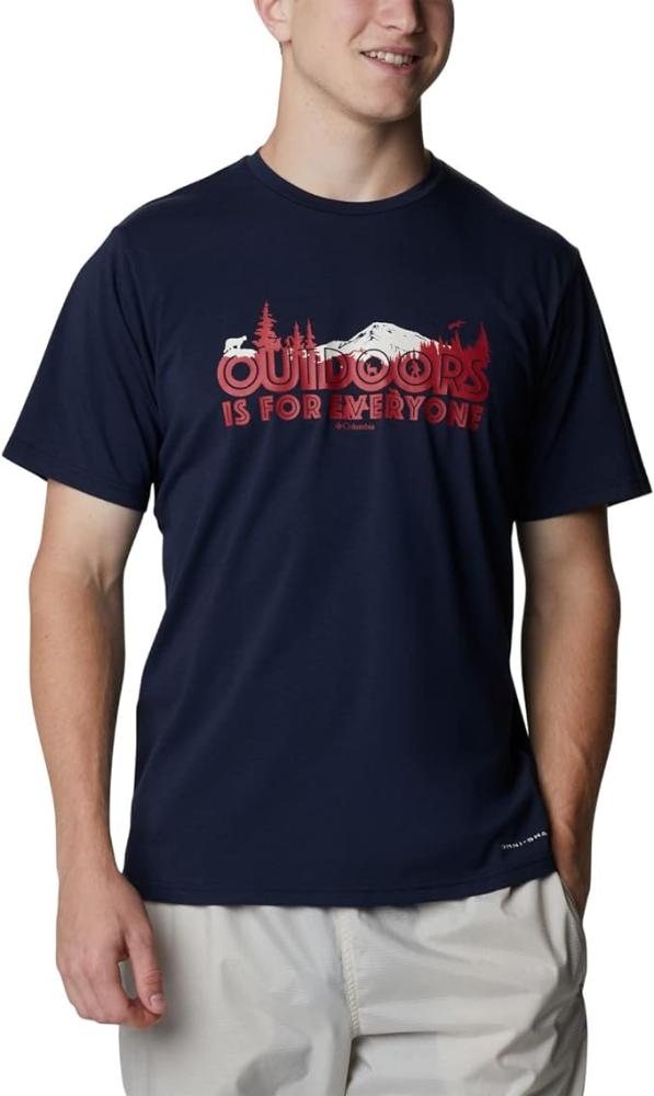 كولومبيا تي شيرت صن تريك باكمام قصيرة مزين برسومات للرجال للمشي لمسافات طويلة - كوليجيت نافي/اول فور اوتدورز جرافي
