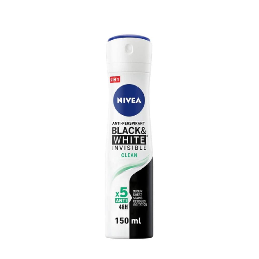 نيفيا مزيل العرق المضاد للتعرق انفيزيبل كلين للنساء من بلاك اند وايت هو تركيبة فريدة تحمي ملابسك من العلامات البيضاء والبقع الصفراء - يبقى اللون الأسود والأبيض أبيض لفترة أطول. تم تركيبه بحماية موثوقة ضد التعرق لمدة 48 ساعة وغني برائحة منعشة تدوم طويلاً، مزيل العرق نيفيا Black & White Invisible Clean المضاد للتعرق للنساء يترك بشرتك نظيفة ومنعشة مع التخلص من العرق ورائحة الجسم. نيفيا، مائة عام من العناية بالبشرة مدى الحياة!