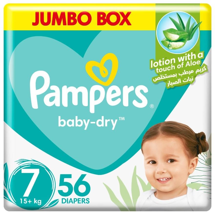 بامبرز حفاضات بيبي دراي مع لوشن الصبار مقاس 7