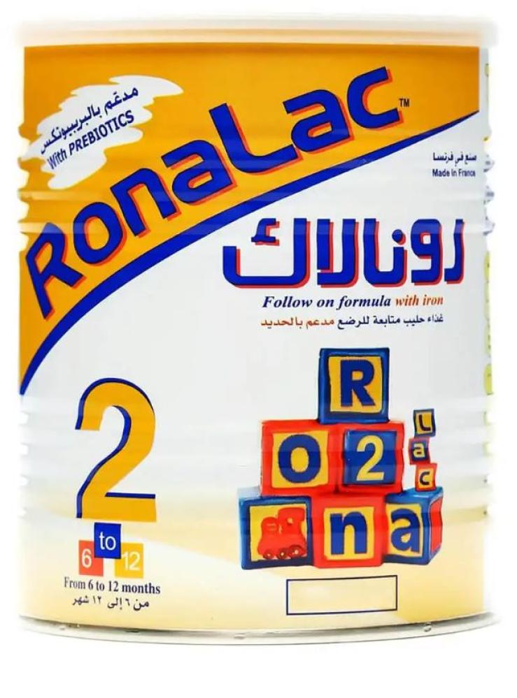 رونالاك 2 حليب المتابعة للرضع من 6 إلى 12 شهر، ومدعم بالحديد ويوفر للطفل السعرات الحرارية اللازمة للنمو والنشاط، ومدعم بمكونات الأيميونوبوستر لدعم الاستجابة المناعية والحماية، كما انه مدعم بالبريبايوتكس لتحسين نمو البكتيريا المفيدة وسهل الهضم وخفيف على الجهاز الهضمي بدون اي مشاكل هضمية.وتركيبة رونالاك 2 متوازنة غذائيا وتوفر جميع الفيتامينات والمعادن، تلبي الاحتياجات المتزايدة من السعرات الحرارية والكالسيوم والحديد والبروتين والمواد الغذائية الأخرى لضمان التطور البصري والعقلي والنفسي الأمثل فقط وحصرى من بى كير إرشادات الاستخدام: غسل اليدين تنظيف وتعقيم جميع الأواني المستخدمة في تجهيز الرضعة عن طريق وضعها في الماء المغلي لمدة 10 دقائق. يغلي ماء الشرب لمدة 5 دقائق ويترك ليبرد صب الكمية المحسوبة من الماء الفاتر في زجاجة الرضاعة، إضافة مكيال واحد إلى 30 مل من الماء، وإعداد الحجم الإجمالي وفقا لحاجة الطفل، أغلق زجاجة الرضاعة وهز بلطف حتى يذوب المسحوق تماما، ثم يتم تغذية الطفل على الفور وقبل إعطاء الرضعة للطفل يتم اختبار درجة الحرارة على اليدين،
